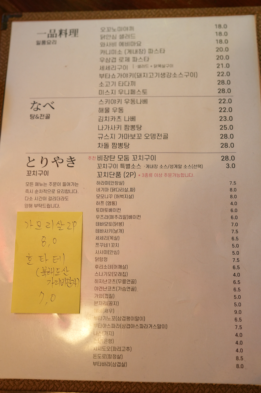 작년 11월에 일본도 다녀오고 오랜만에 일본식꼬치가 먹고싶어서 한번 방문했는데 너무 좋았었습니다.